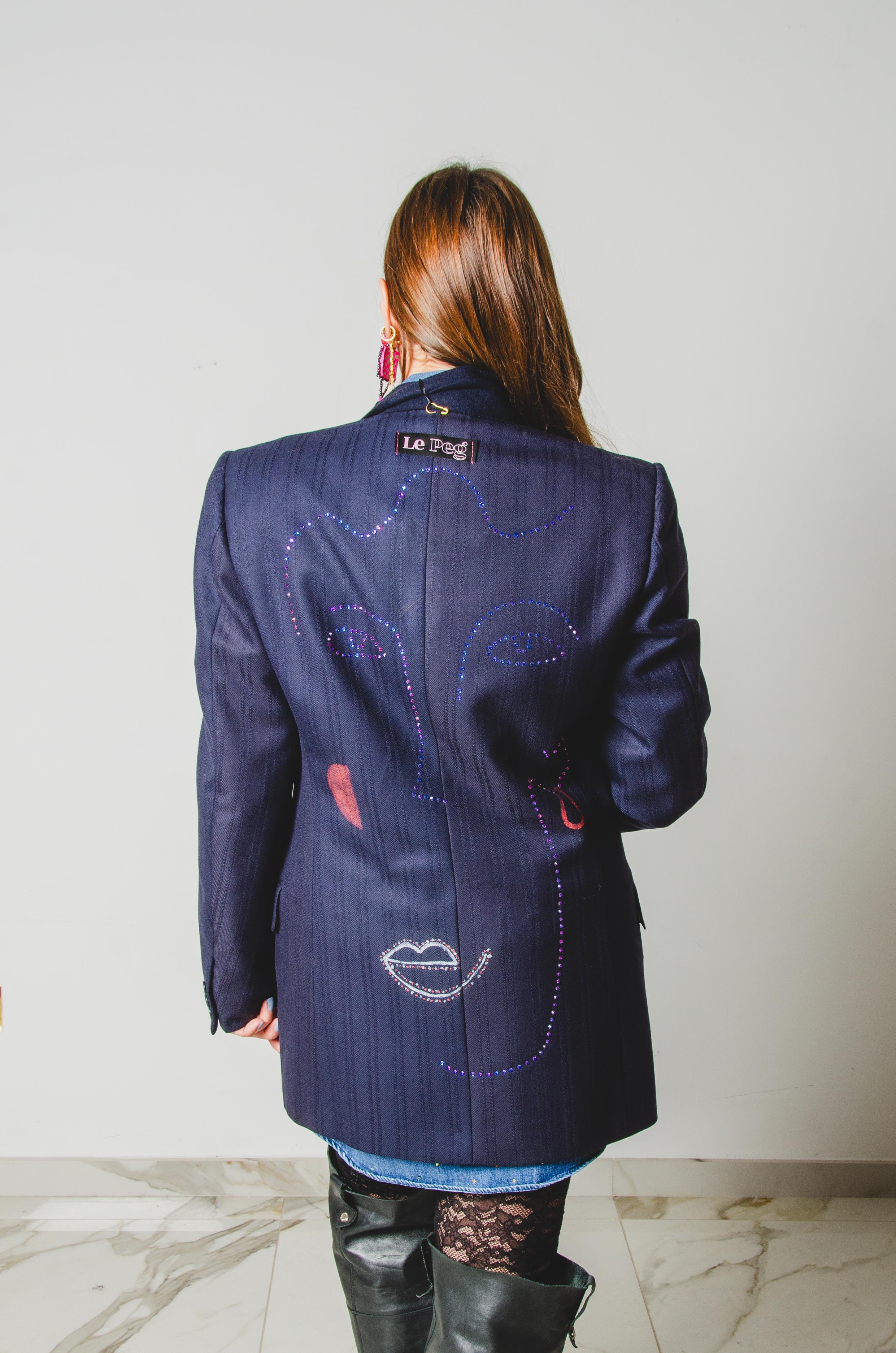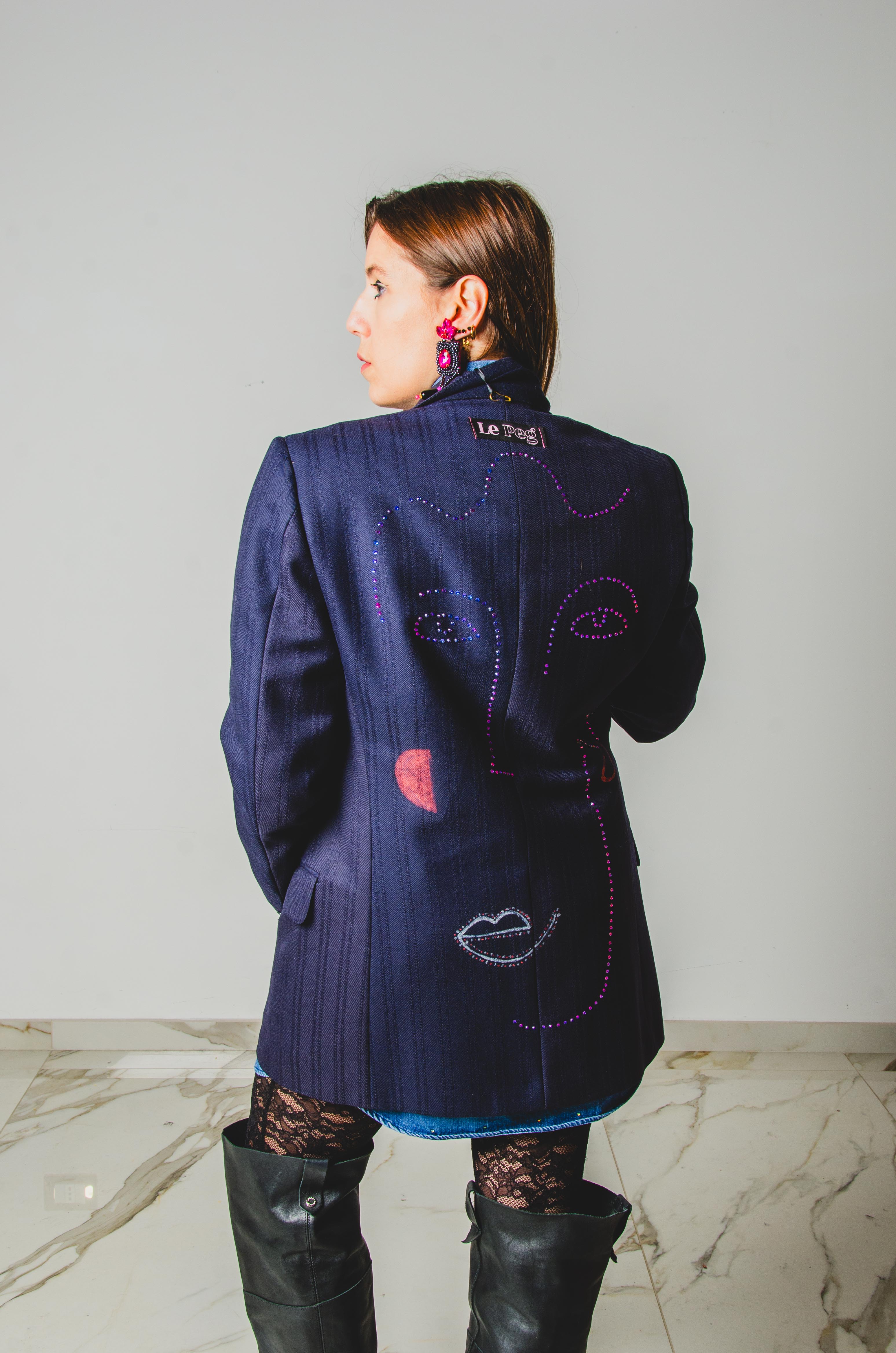 Ti presentiamo la nostra giacca uomo vintage upcycling pensata per le donne , l'aggiunta perfetta al guardaroba di ogni individuo alla moda. Ogni giacca è realizzata con cura con materiali vintage, rendendola non solo elegante ma sostenibile. Modifichiamo personalmente giacche vintage che hanno una qualità decisamente superiore alle giacche di nuova generazione e le impreziosiamo con colori e ricami a mano.