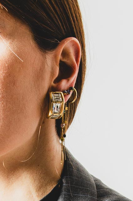 Il loro design geometrico richiama l’estetica vintage più sofisticata, perfetta per chi ama accessori dal gusto retrò ma facilmente abbinabili a look contemporanei. Indossati con un outfit essenziale aggiungono un tocco couture, mentre su abiti più eleganti diventano un dettaglio prezioso e senza tempo.