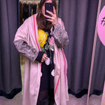 Questo modello non prevede taglie ma si adatta a tutte le fisicità non avendo chiusure obbligate, vestono fino ad una 56/58 e si chiudono con la cintura che passa internamente nel retro.