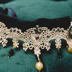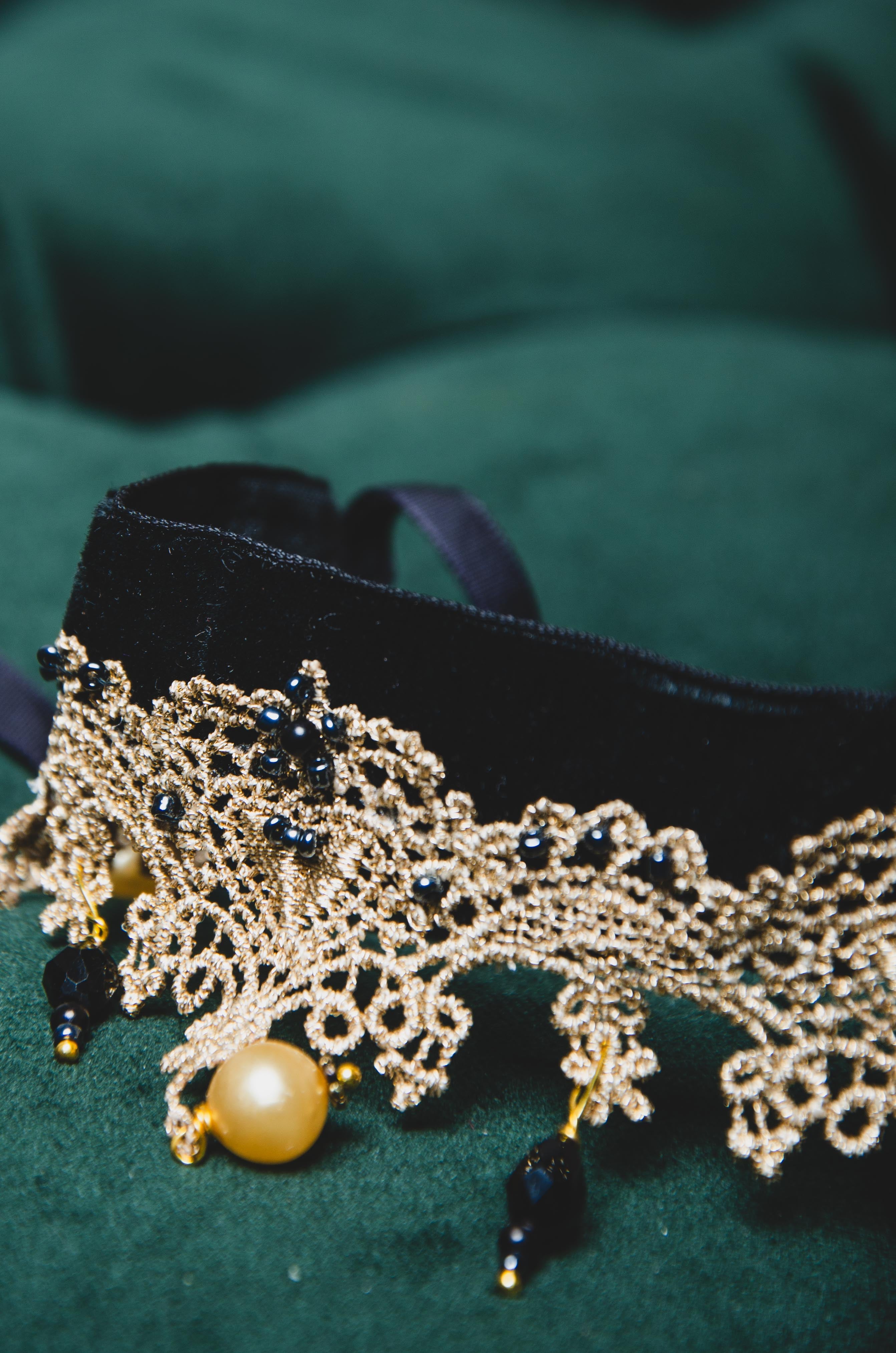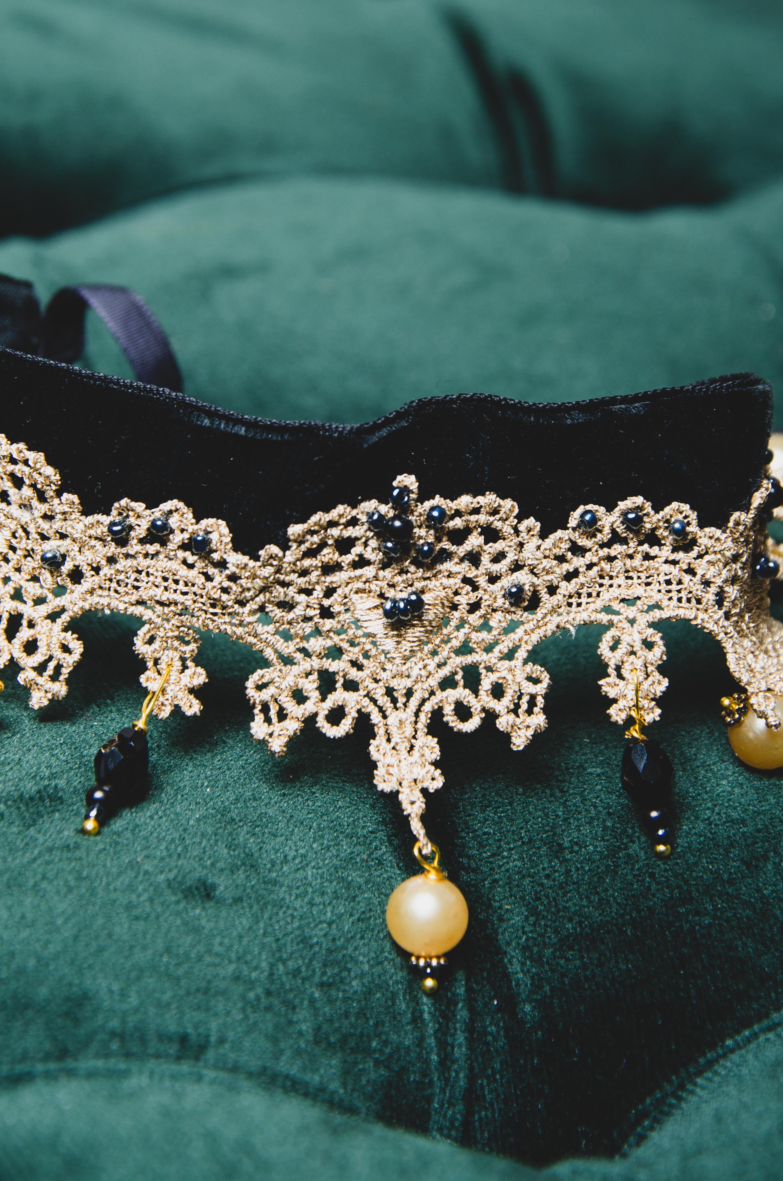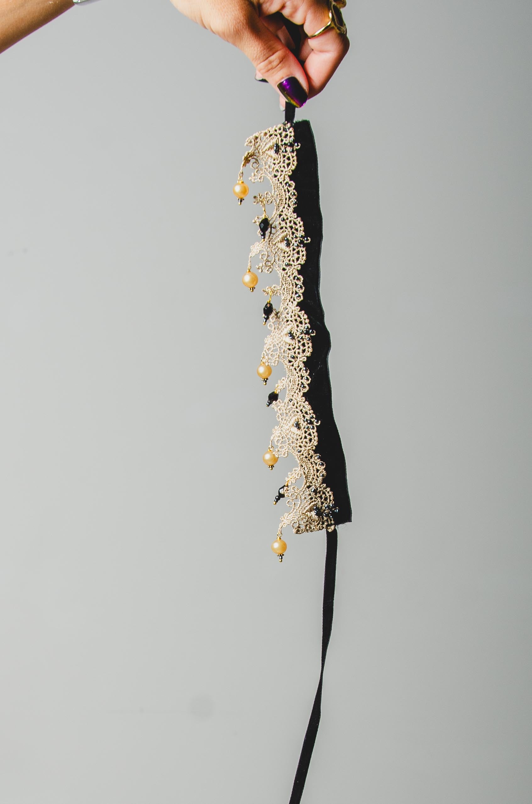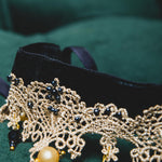 117 Collana chocker 100% Handmade con nastrino in velluto e passamaneria con ricami e pendenti