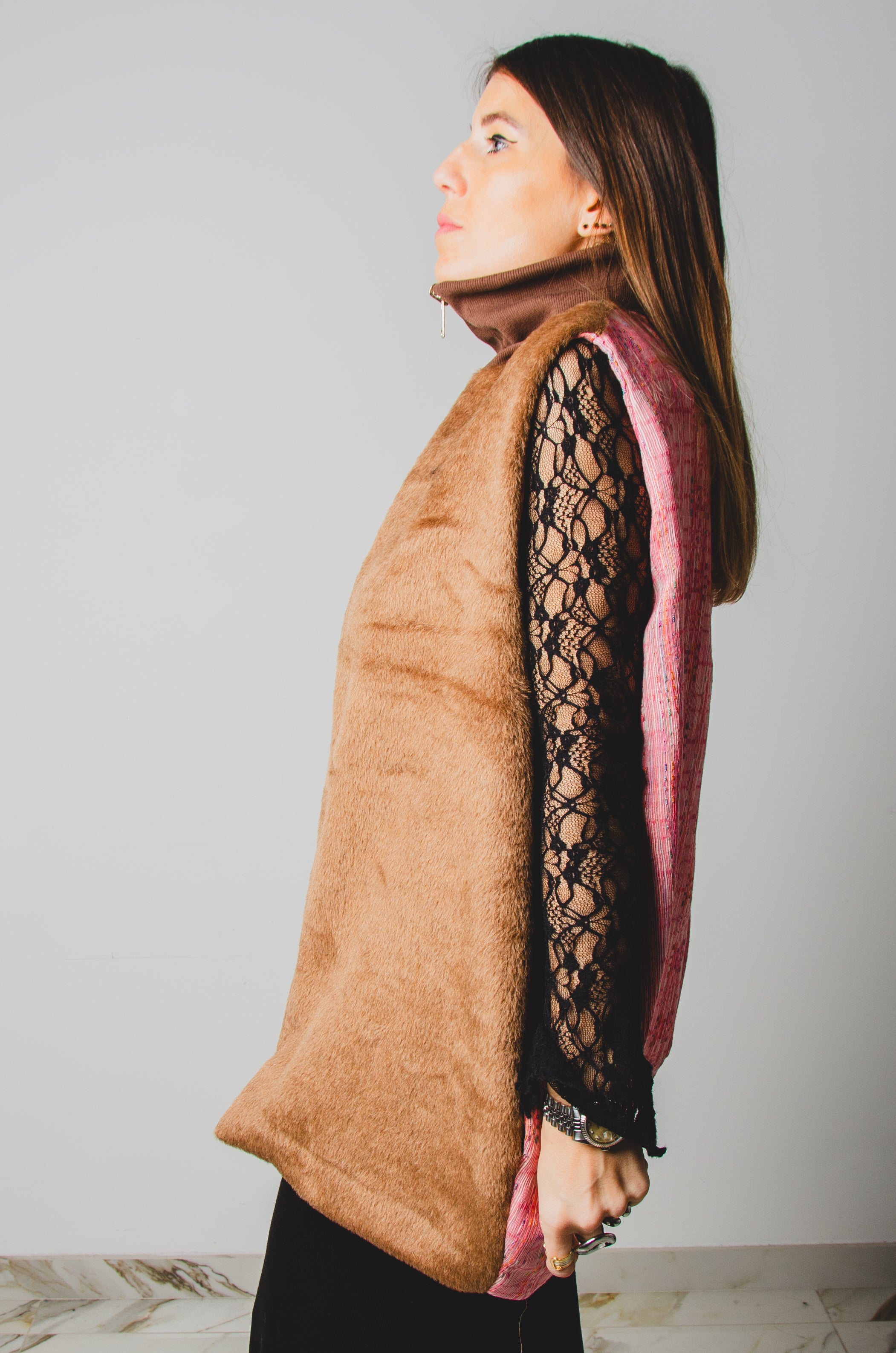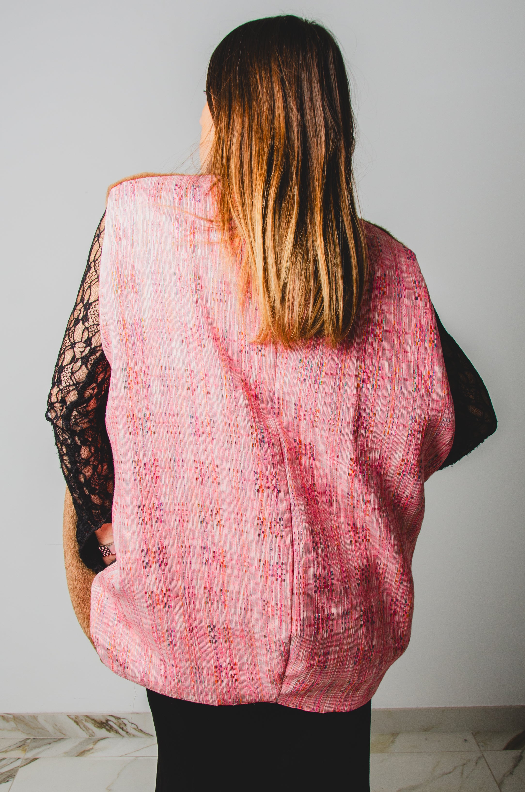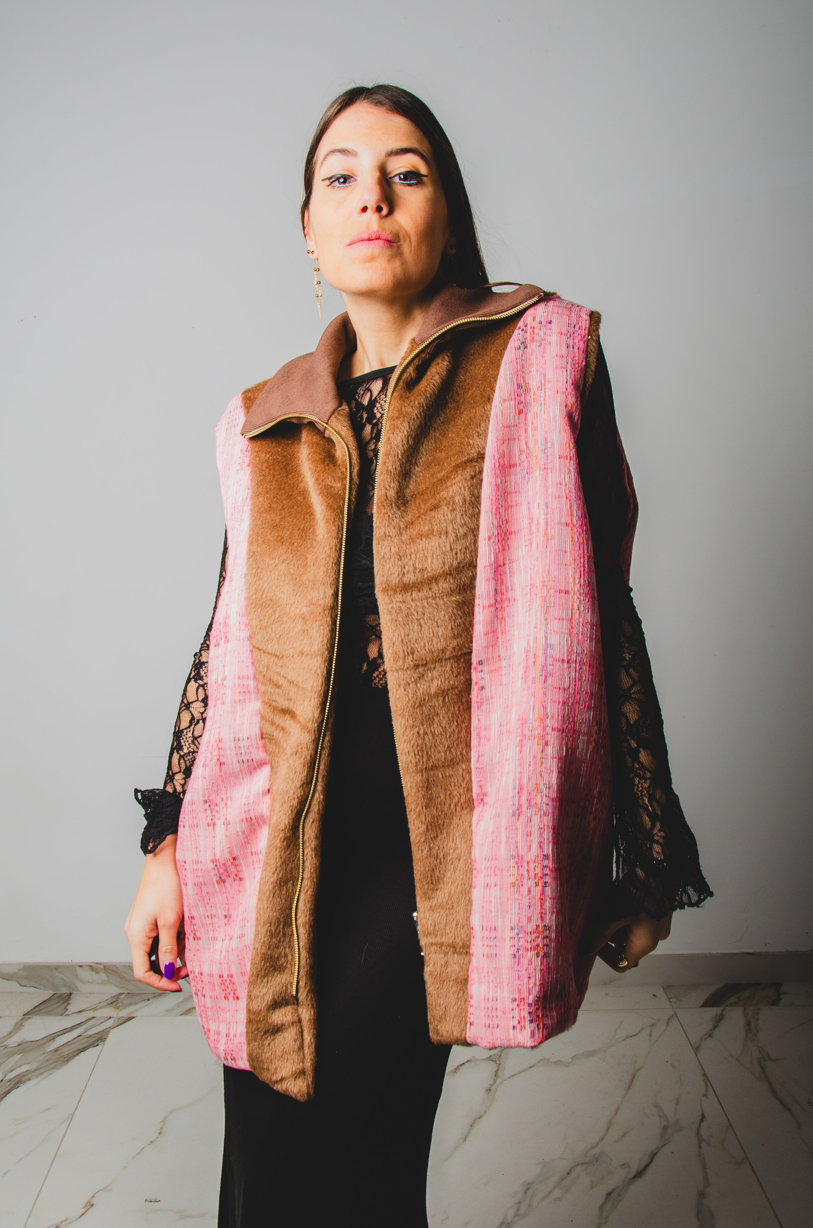 GILET IN ALPACA CON COLLETTO - REVERSIBILE IN JAQUARD ROSA