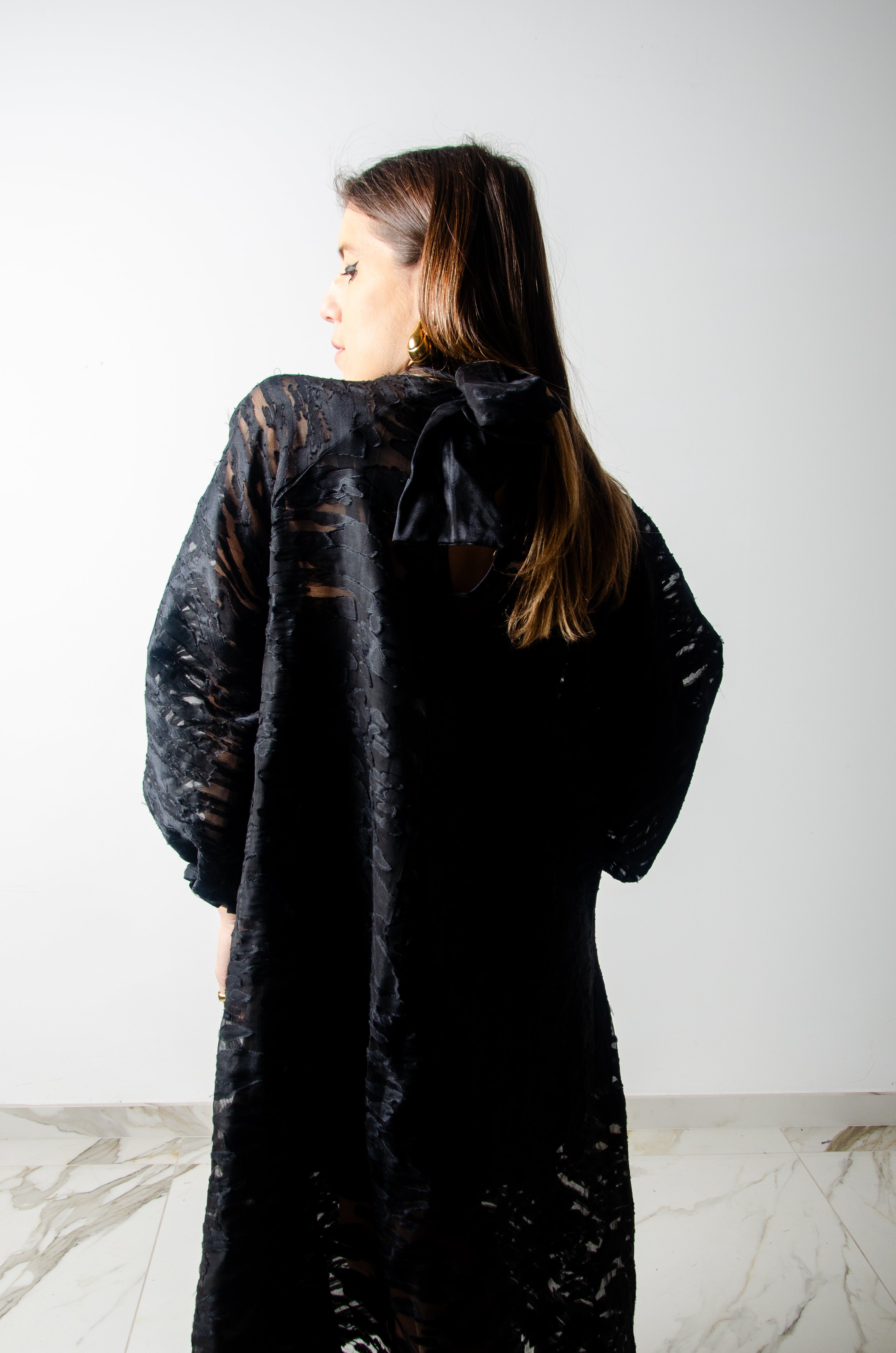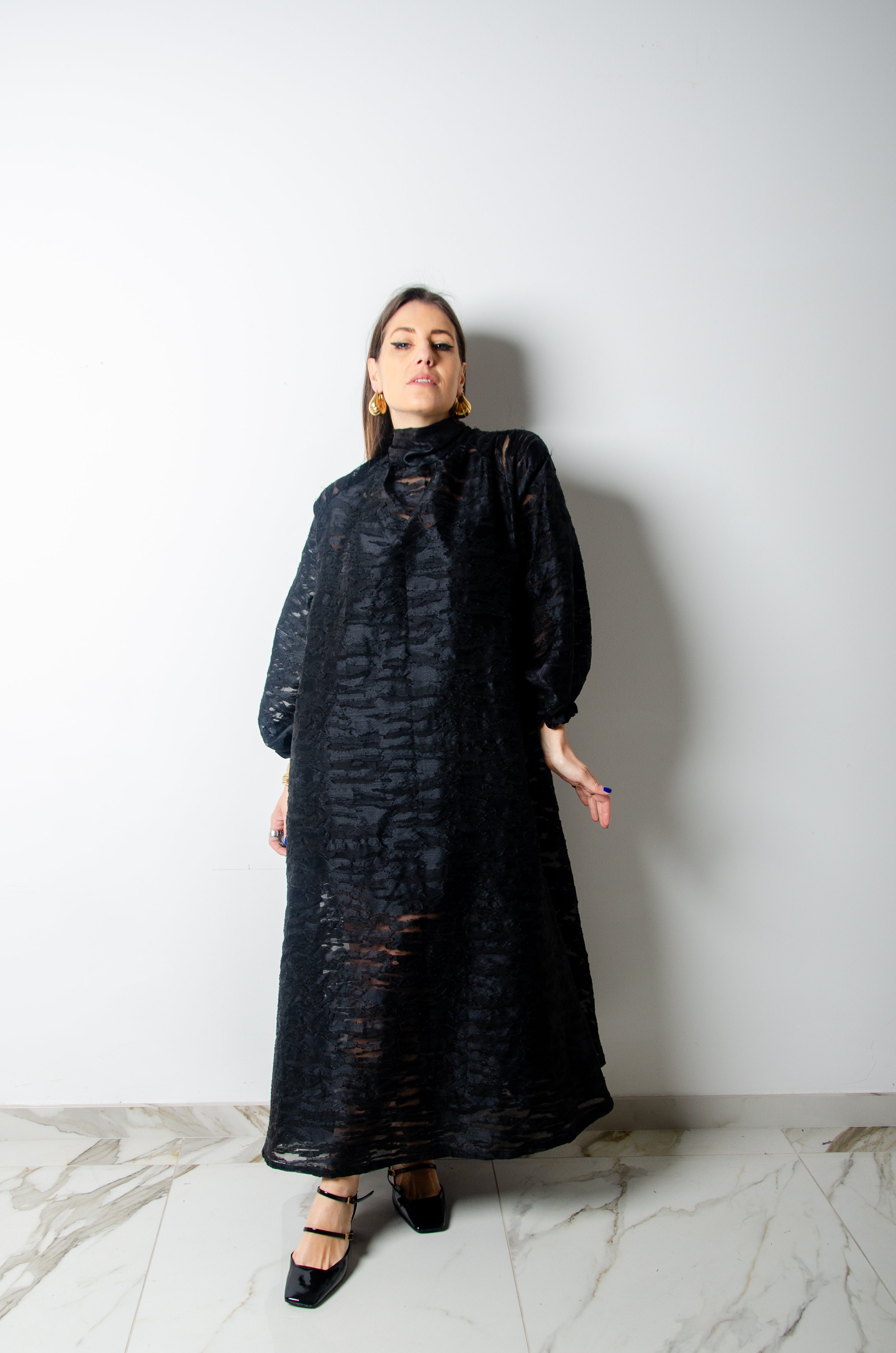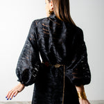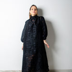 OPERA dress - Vestito sartoriale accollato / scollo a V ampio TESSUTO OPERATO NERO