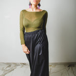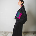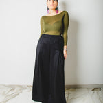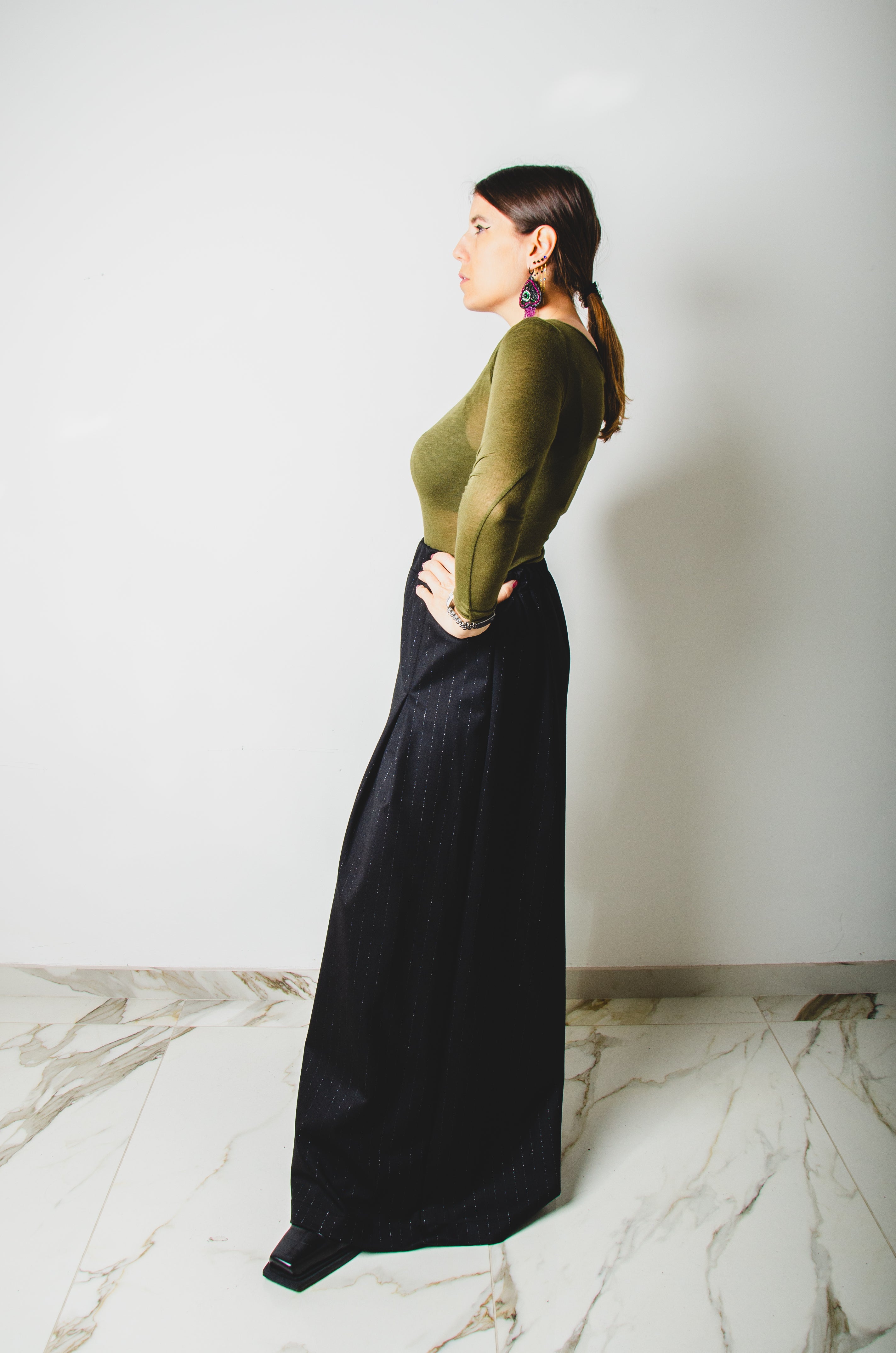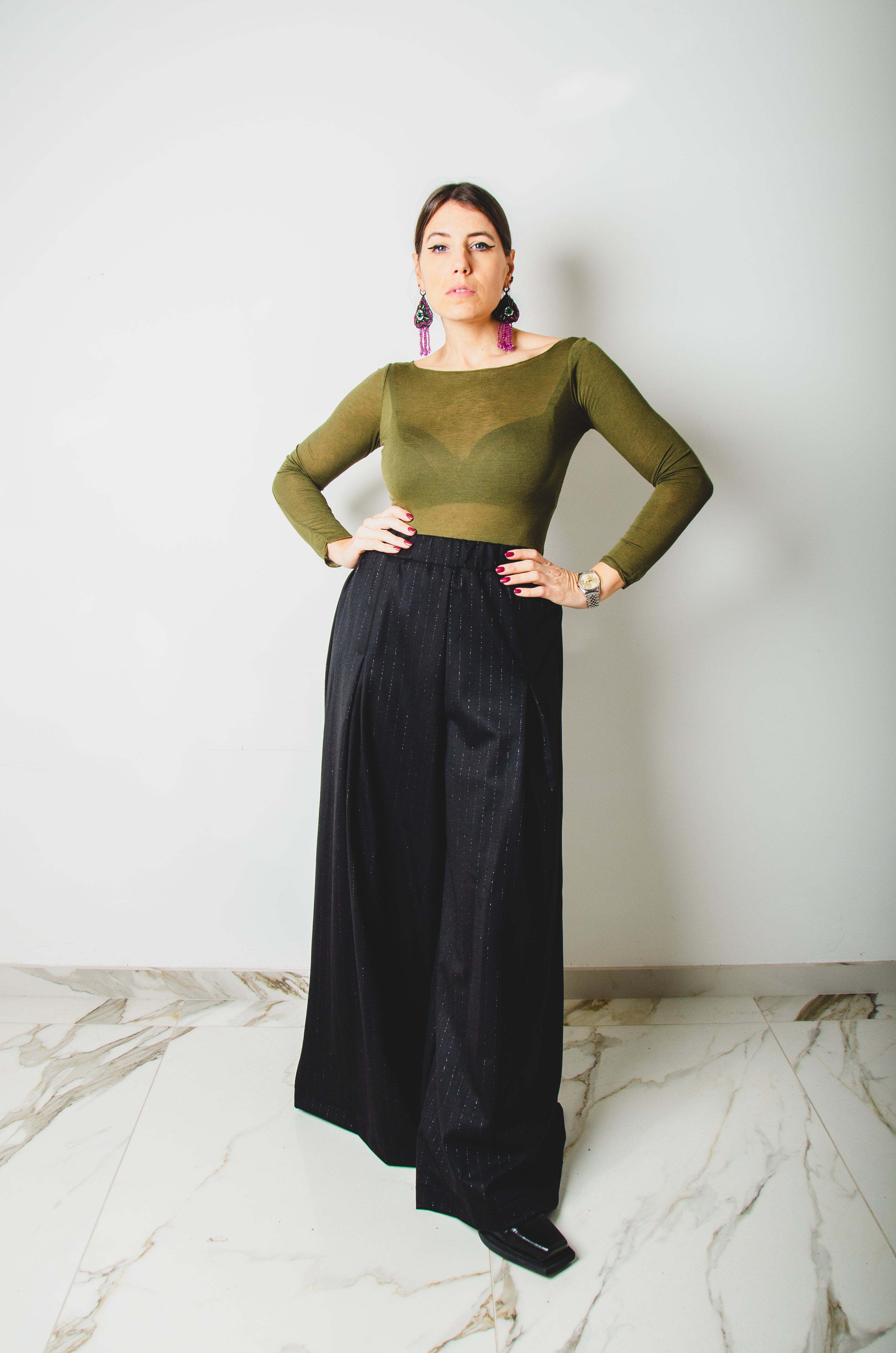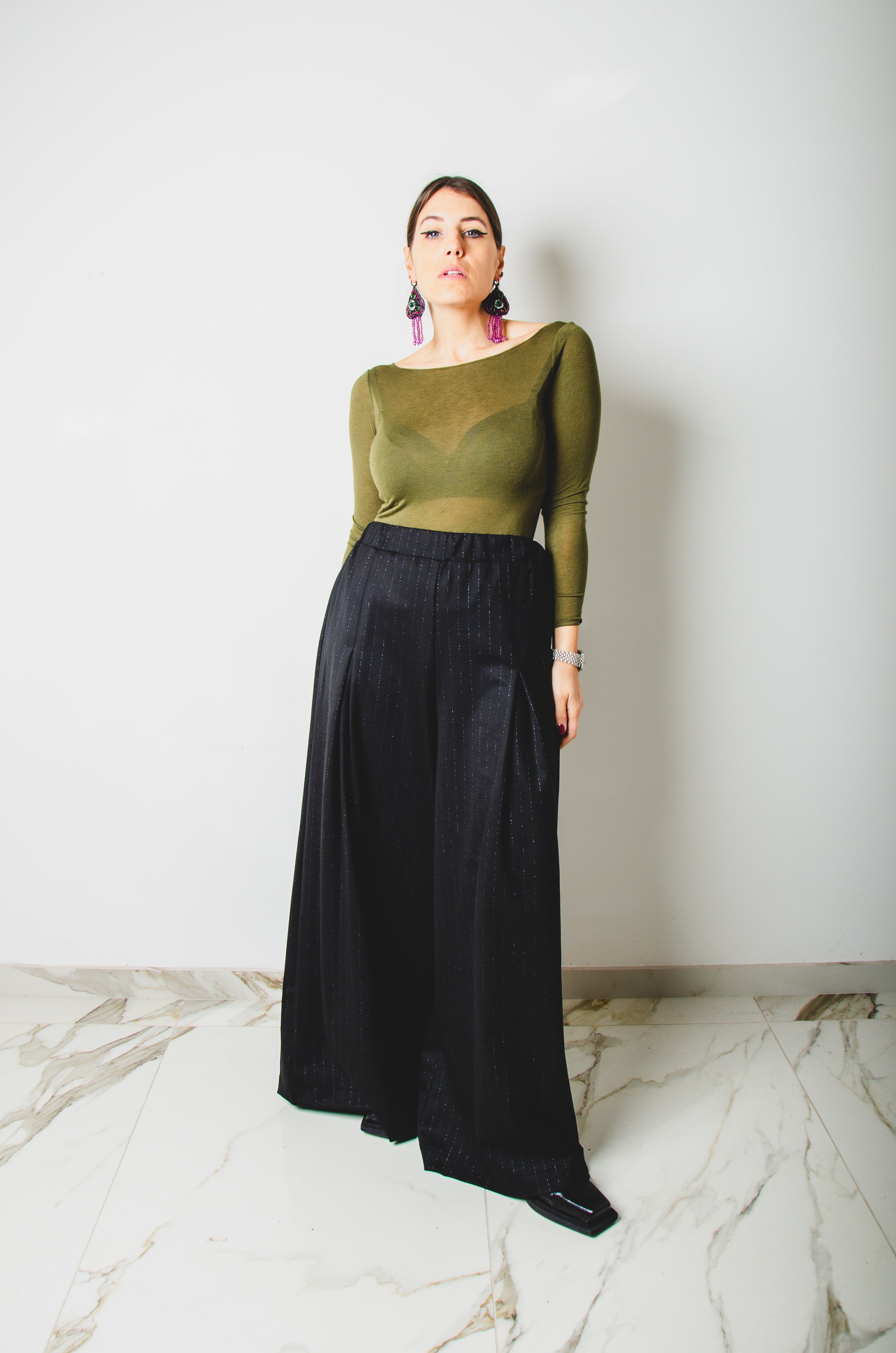 34 - Pantalone palazzo NICOLE sartoriale in lana nera con gessatura in lurex brillante