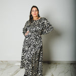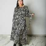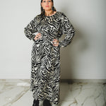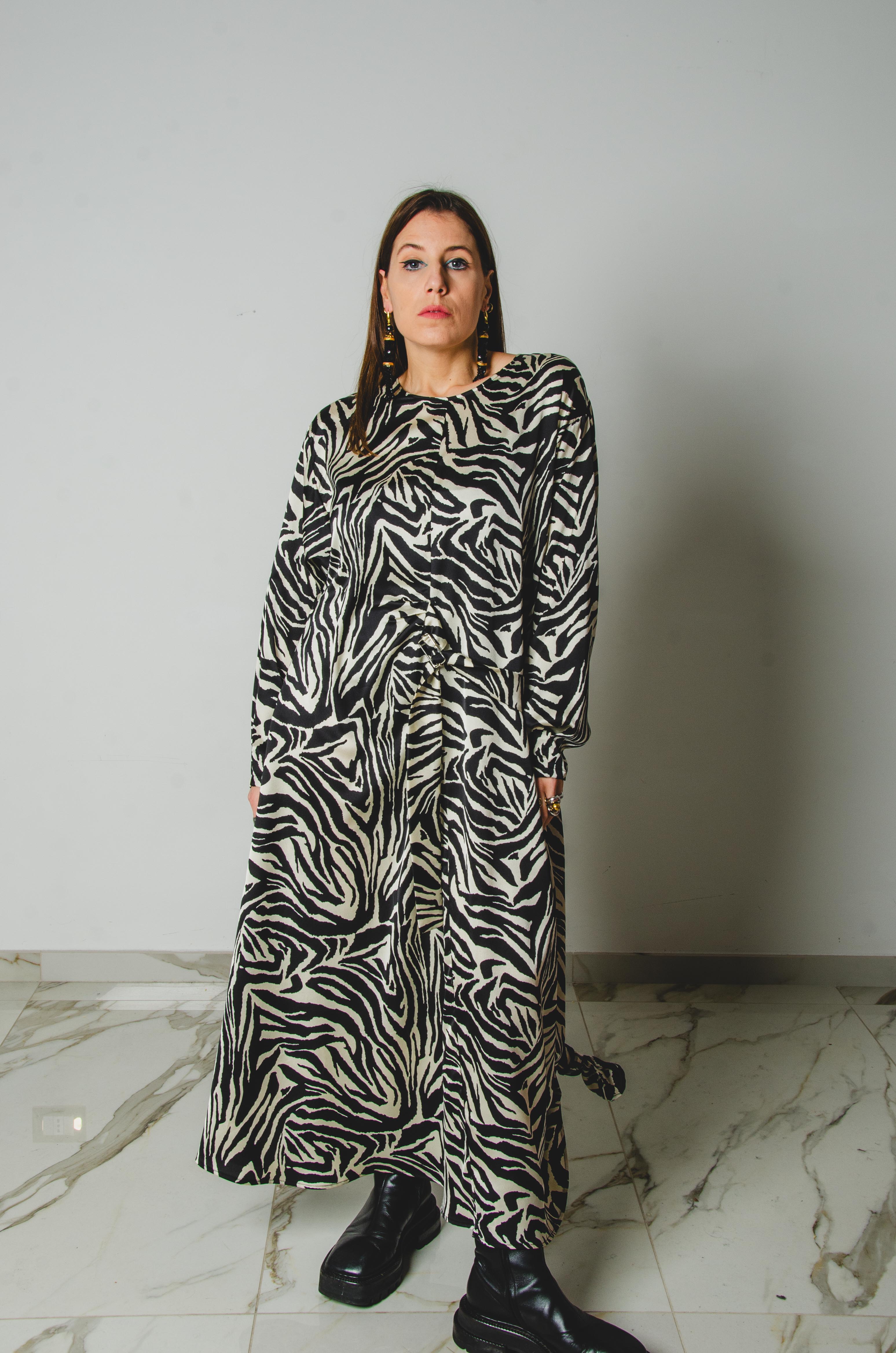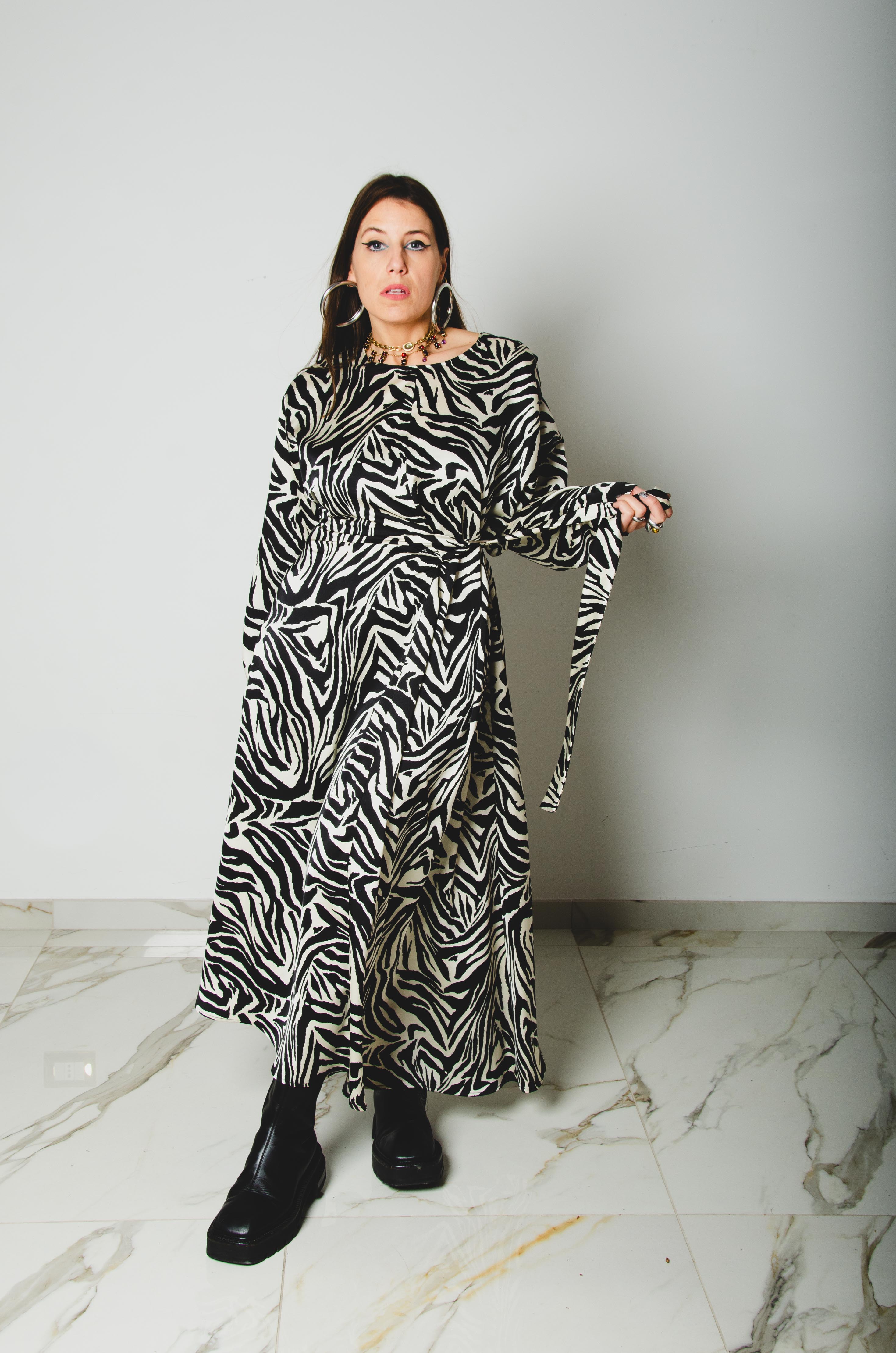 Ofelia dress - vestito ampio con cintura in vita e manica lunga - zebrato