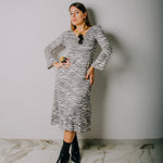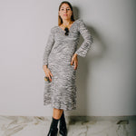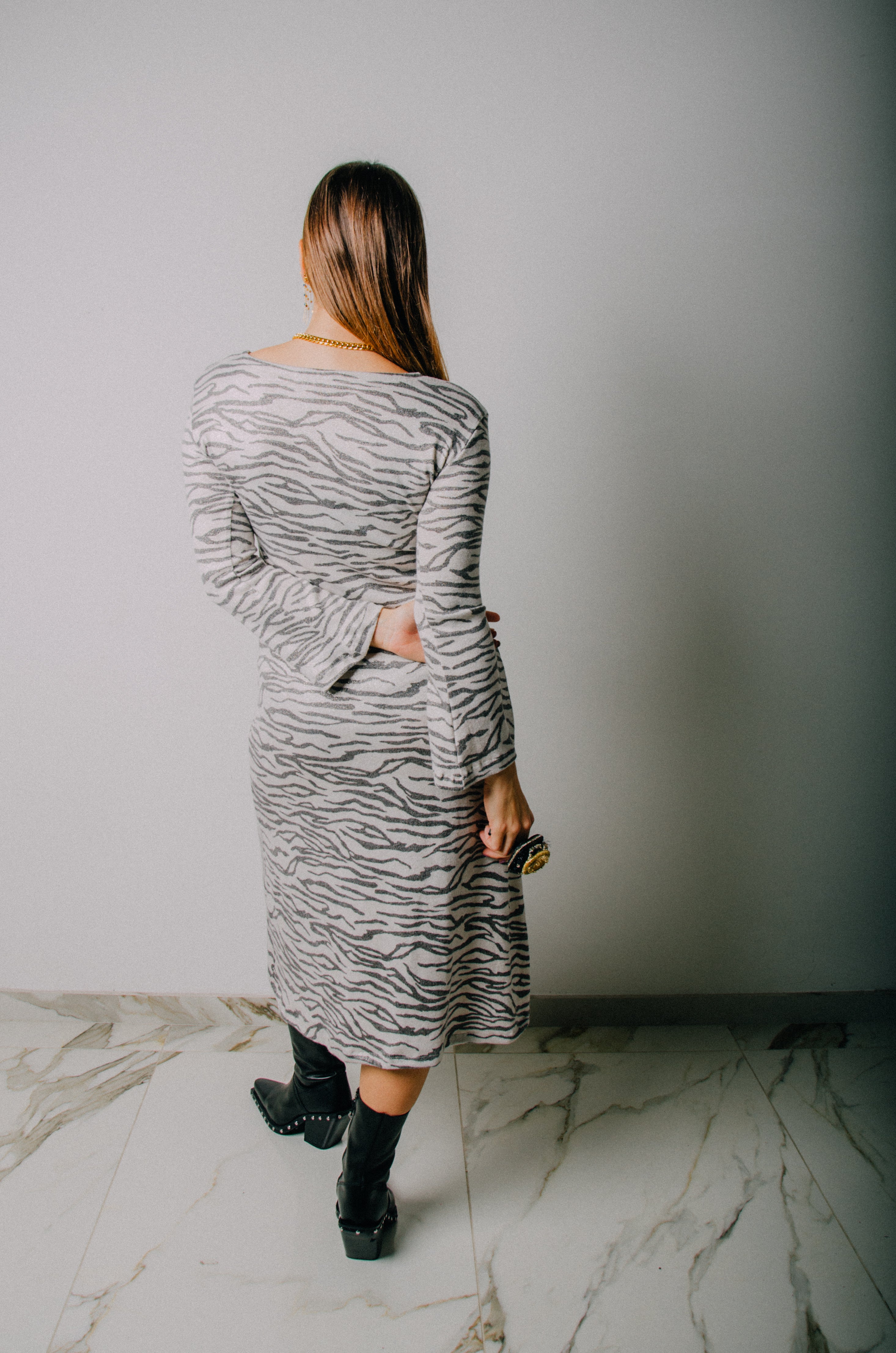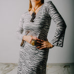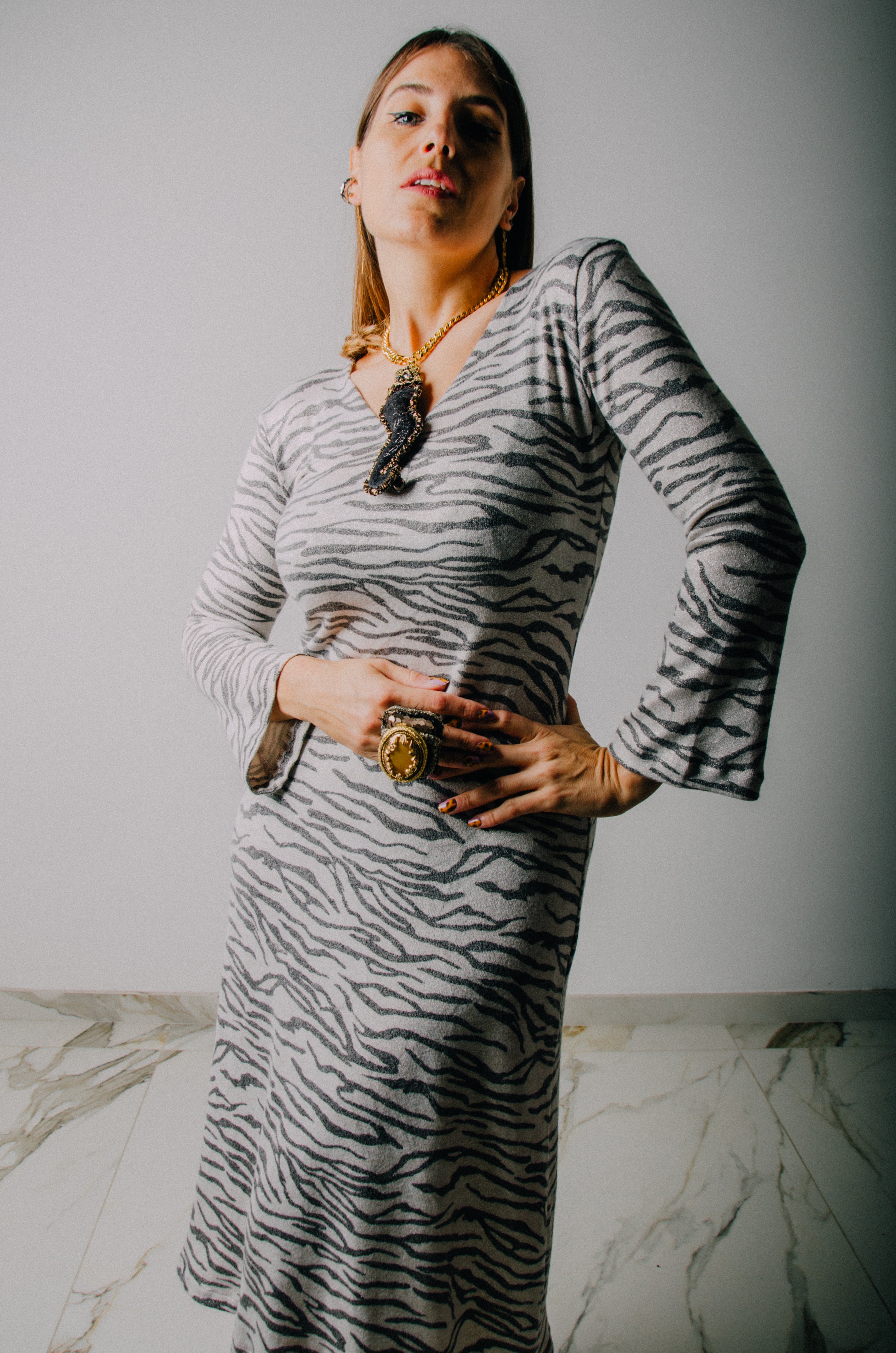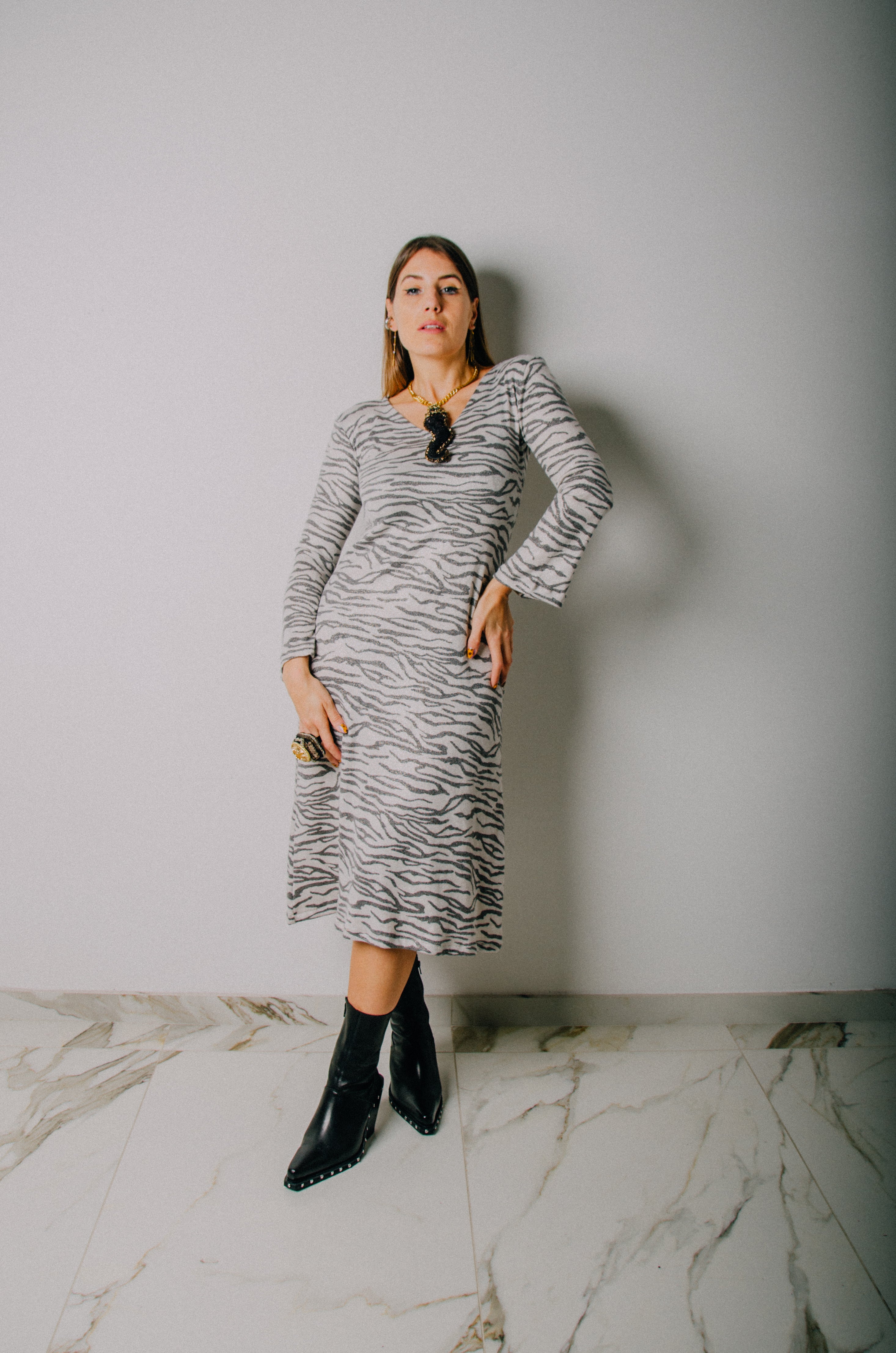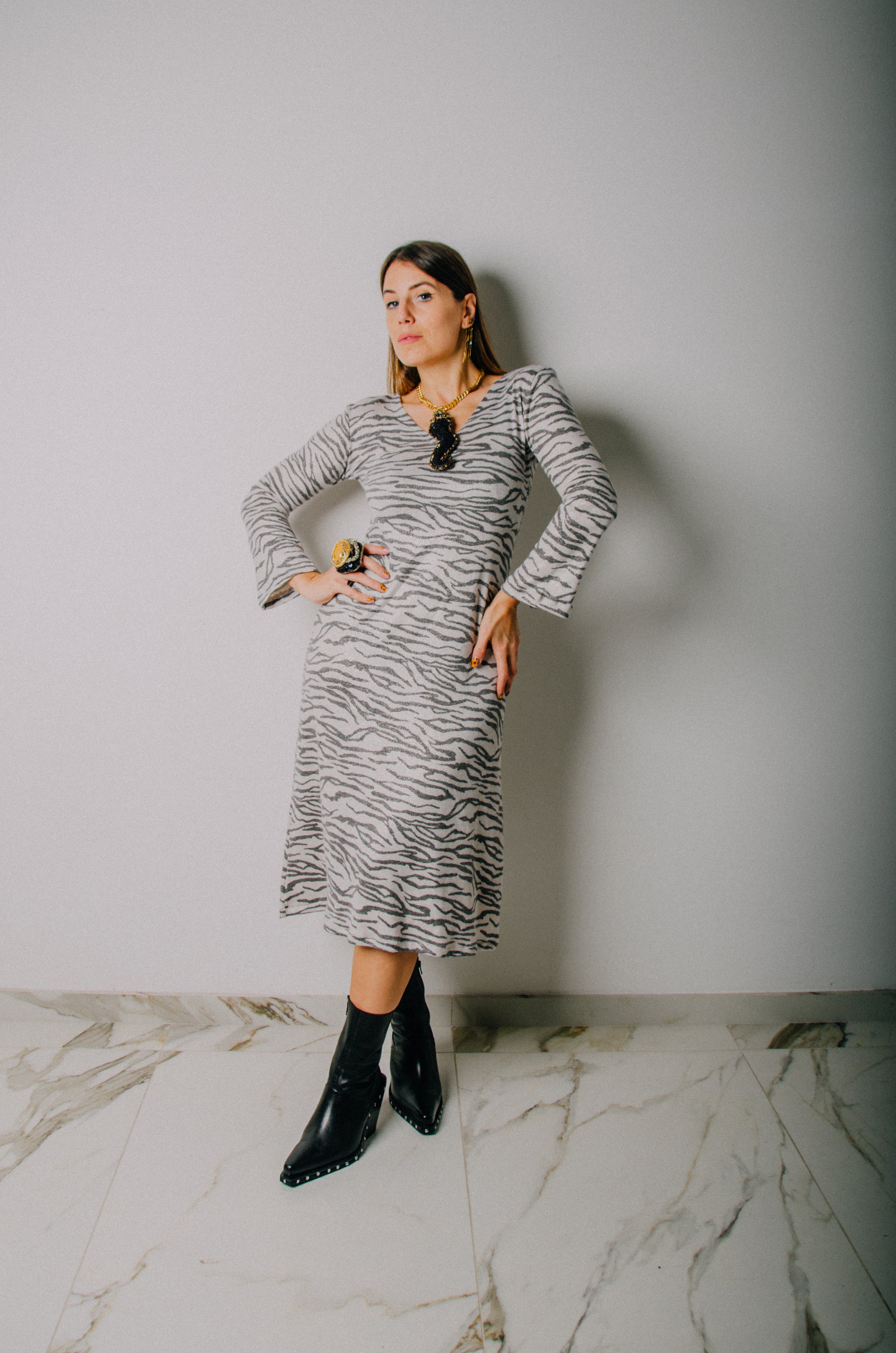 SOFT dress - Vestito con scollo a V/rotondo lungo con maniche a 3/4 fantasia in maglina elasticizzata in lurex zebrato